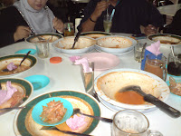 Tapi kami yang kata sedap ni sebab kami membandingkan antara kedai di seberang sungai sana yang kami makan haritu. Kedai yang 'femes' tu, kuahnya 'ceroi' dan tak pekat. lain pula di Aur Gading, kuahnya pekat dan boleh terasa pecahan-pecahan ubi kentang blender (Pendek kata, memang rasa mee kuah). Aku tak tahu la samada nasib kami memang baik malam tu sebab ia sedap ataupun hari-hari lain memang rasa macam tu. Kalau maintain rasa macam kami makan tadi, insya-Allah, bolehla aku jadi pengunjung setia sebulan sekali lepas ni. Total 3 mangkuk mee yang kami makan campur air bergelas-gelas dan jugak keropok sampingan (Tumpi - macam tempeyek, kacang pedas dan kerepek pisang) semuanya berjumlah RM89.00 ataupun RM11.12 seorang untuk 8 orang kami. Berbaloi tak? Pada aku..... berbaloi sebab memang kena ngan rasa mulut aku... Sedap! Kalau orang lain datang masa tak sedap... Aku takleh nak kata apa-apalah, hahahaha